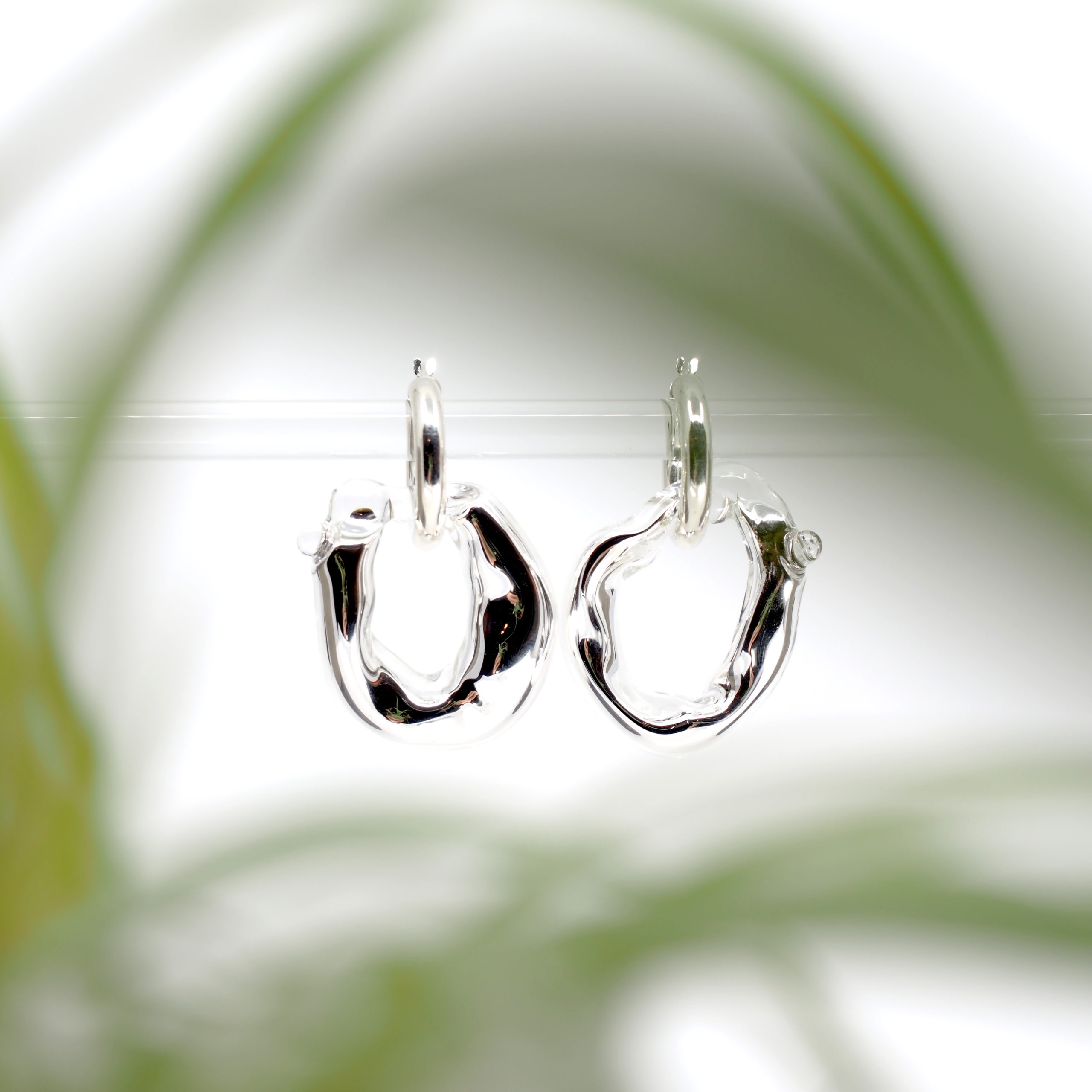 Boucles d’oreilles en verre borosilicate transparent miroitĆ© avec des creóles en argent 925.